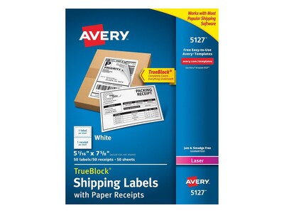 Avery TrueBlock Laser Shipping Labels, 5 1/16" x 7 5/8", White, 1 Label/Sheet, 50 Sheets/Box ...
