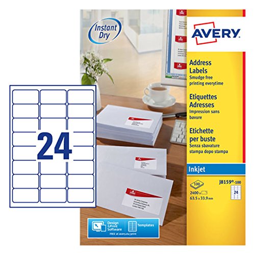Avery Self Adhesive Address Mailing Labels, Inkjet Printers, 24 Labels per A4 Sheet, 2400 labels ...